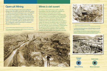 Officially opened in 2011, the site features a walking path and 24 interpretive panels that chronicle key characters, events and outcomes during and following the gold rush. The Klondyke Centennial Society owns the claim and they work together with Parks Canada and the Yukon Government to manage it.